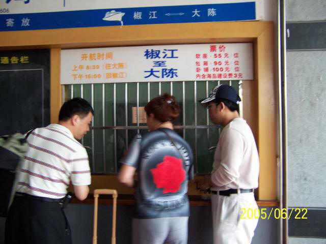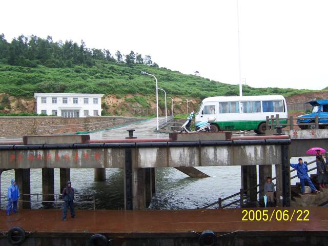 台北縣浙江省溫嶺縣同鄉會於2005年06月20日出發,我們因而有機會跟團返鄉 並幫忙攝影和錄影。我們經香港轉機至寧波,再經兩小時的車程抵椒江市。團體拜會和個別省親後,第三日我們 在海門搭乘約兩小時的渡輪,先抵上大陳關帝岙碼頭,停留約五分鐘,再航向下大陳。三天兩夜的停留,除觀光浪通門、美齡亭、甲午岩、少年宮等行程外, 團員中有者尋回老家的點點滴滴蹤跡,有者掃墓祭祖。其中吳伯伯五十年來第一次回到家鄉,這過程讓人動容。 對我們而言,首次踏上研究對象的鄉土,感覺一切即陌生又熟悉。文獻中陳述的人事物,在五十年後的初夏重逢,從文字世界和口述 中走向真實的當地社會, 許多人事物不時撼動我們的心弦。 聆聽報導人 的解說,歷歷在目,記憶猶新,仿佛是不久前才發生的故事。轉眼間,說故事的人,早已從青少年變成白髮老人......。
