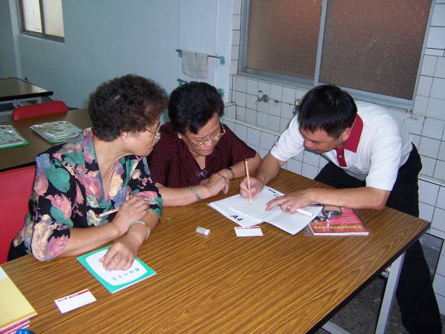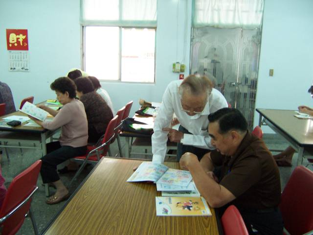 右上圖則是尚代表幫忙教學,識字班在尚代表和葉老師熱心推動下,可以明顯感受到學習氣氛和效果。
