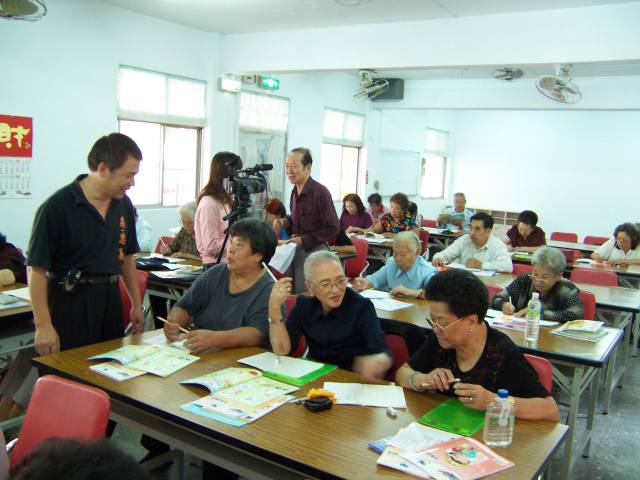 下圖為11月4日雙和電視台記者前來採訪,場面溫馨感人:受訪的陳伯伯、葉老師及注音符號教學。