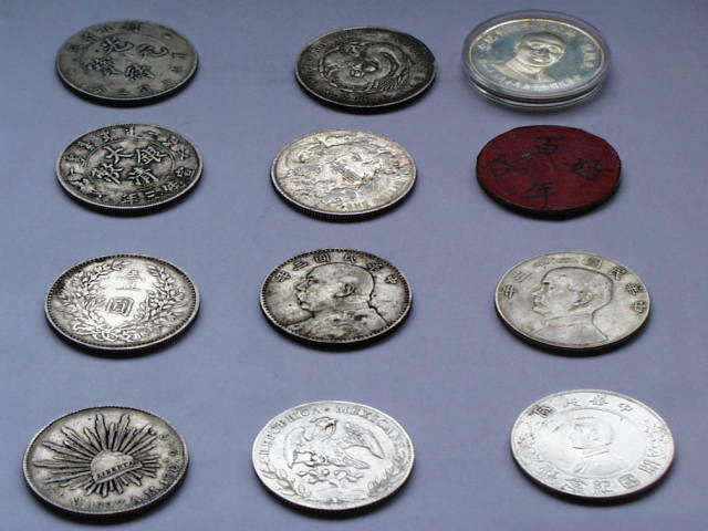 田野中毛伯伯展示 當時大陳流通的各種銀元