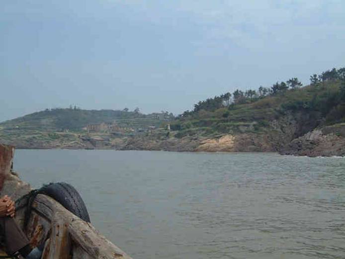 二千零四年四月中旬由上海搭長途巴士約五小時,抵台州市椒江,翌晨八點卅分在海門碼頭搭船開始返鄉之旅,航行兩小時,航抵上大陳島,船在新建之碼頭下客後續航向下大陳。因上大陳山路難行,只能轉搭舢舨行水陸到我老家—雙架。抵岸,行至島之東側面東海處,覓得先母墳地,祭拜後,循原路出來,並照相為記。再搭舢舨繞航上大陳島一圈,所見島之四周,皆為峭壁或岩岸,難見沙灘,北端怪石嶙立,驚濤拍岸,堪稱勝景。